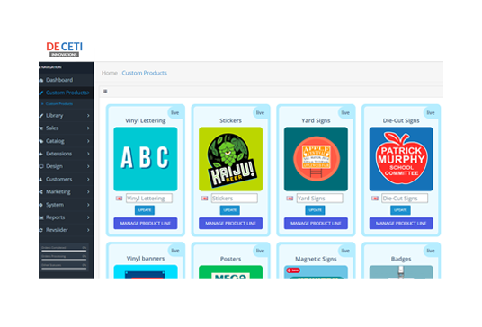 Whether you're offering vinyl lettering, banners, yard signs, stickers,t-shirts, promotional items or other custom products, our platform is designed to support your web-to-print business.